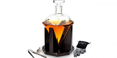 Une carafe exceptionnelle : la carafe en verre de haute qualité est en forme de diamant. L'accessoire indispensable dans votre bar. La contenance de cette carafe est de 850 ml et est livrée avec le support en bois.
