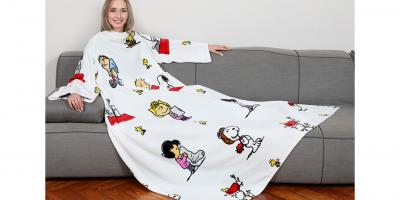Cette couverture douillette Peanuts dispose non seulement de manches, mais aussi de poches, pour vous garantir le maximum de confort en toutes circonstances. Elle accompagnera vos moments de détente sur le canapé et vous gardera toujours bien au chaud.