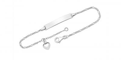 Magnifique gourmette en argent avec plaquette personnalisable. Un petit coeur vient décorer le bracelet.