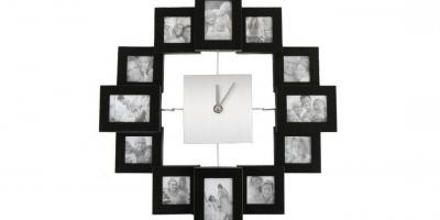 Horloge murale photo avec 12 emplacements pour vos photos préférées. Ainsi, chaque fois que vous regardez l'heure, vous pourrez en plus jeter un œil sur vos plus beaux clichés. Beau cadeau personnel.