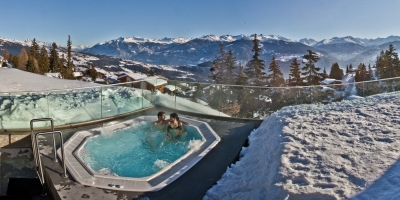 Ce bon cadeau vous promet de passer un instant de détente pure. Commencez par profiter des bains et de l'espace bien-être. Sauna, hammam et sanarium vous attendent. Vous pourrez également vous ressourcer dans le jacuzzi extérieur qui vous offre une vue sur les sommets des Alpes valaisannes.