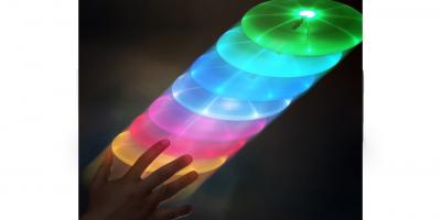Avec ce frisbee LED vous pourrez même jouer dans l'obscurité. La batterie du frisbee permet de changer de couleurs et de motifs (soit 7 différents). Grâce à cette fonction, le frisbee sera visible dans l'obscurité et à l'aube. Un accessoire parfait pour les soirée dans le parc.
