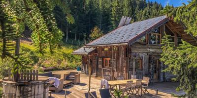 Dans un souci de respect de l’environnement, ce chalet produit sa propre électricité grâce à des panneaux solaires et est alimenté en eau par sa source.
