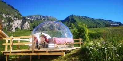 L'air pur des montagnes, le fabuleux panorama alpin et les cieux parés de leurs plus belles étoiles... Cette nuit en igloo de verre dans la vallée d'Isenthal sera des plus reposantes! Votre bulle de détente se trouve sur une terrasse dégagée du Gitschenen, dans le canton d'Uri. Perchée au cœur de paysages à couper le souffle, elle offre une ambiance unique pour profiter de votre moitié en toute intimité et refaire le plein d'énergie. Avec un peu de chance, à la nuit tombée, vous vous endormirez sous une pluie d'étoiles filantes, dans les bras de votre bien aimé(e)!