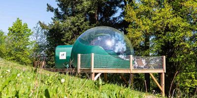 Amoureux de la nature, vivez une expérience incroyable, en toute saison. Elégamment perchée sur sa terrasse en bois, votre bulle offre une vue à 360 degrés sur la nature environnante, sapins et montagnes. Le calme, le chant des oiseaux, les chevreuils. Vous profiterez d’un lit confortable avec couette et couverture chauffante.