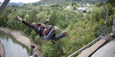 Le saut pendulaire du Viaduc du Day est un gigantesque pendule au-dessus de l'Orbe où, attaché à deux cordes presque tendues, vous pendulerez dans une courbe d'environ 30 m de rayon.