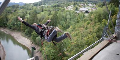 Le saut pendulaire du Viaduc du Day est un gigantesque pendule au-dessus de l'Orbe où, attaché à deux cordes presque tendues, vous pendulerez dans une courbe d'environ 30 m de rayon.