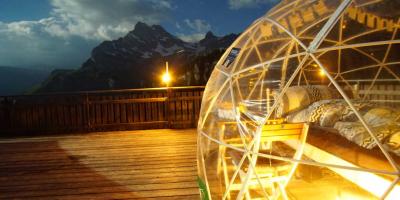 La suite Bubble comprend un lit double avec oreillers et couvertures. Ce lit à baldaquin spécial est décoré sur le thème "Five Billion Stars Suite". Les toilettes de la station peuvent être utilisées sans problème. Tout proche, vous trouverez également un foyer avec du bois pour vous réchauffer. Durant votre séjour, un des points culminants sera une balade en calèche électrique de Braunwald à Grotzenbüel.