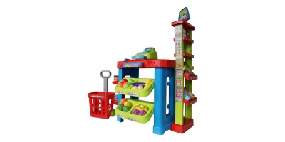 "Le supermarché se monte très facilement. Le scanner (avec lumière et son) est naturellement ce qui est le plus apprécié des enfants ainsi que les nombreux accessoires, mais aussi la caisse qui tourne lors de l'appui sur un bouton et affiche le prix."