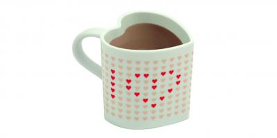 Cette tasse en forme de coeur fait apparaître le message I love You dès que l’on y verse un liquide chaud!