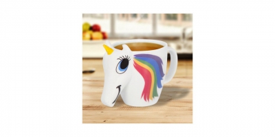 La tasse n'a pas l'air seulement jolie, mais a un en plus un effet spécial… Remplissez simplement votre boisson chaude dans la tasse et regardez la licorne changer de couleur de façon magique.