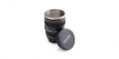 La tasse à café ressemble de très près à un objectif d'appareil photo, de quoi se faire des frayeurs dès le matin. Même le couvercle est très semblable. Un cadeau génial pour les amateurs de photo!