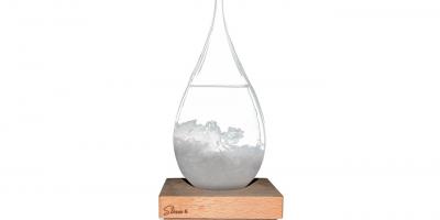 Cette goutte vous donne les prévisions météorologiques ! Ce bel accessoire séduit grâce à son contraste bois et verre. Le meilleur là dedans est l'effet : le cristal blanc vous donne la météo !