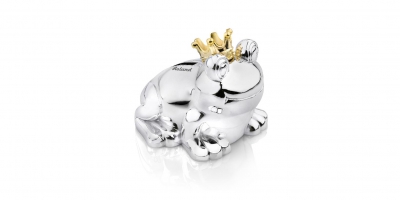 La tirelire argentée personnalisable avec sa couronne couleur or fait son effet. La tirelire est un travail de grande qualité et la finition argent lui donne un bel éclat. Grâce à une protection anti-ternissement la tirelire reste longtamps brillante. La tirelire argentéepersonnalisable roi-grenouille peut être en plus personnalisée avec le texte de votre choix.