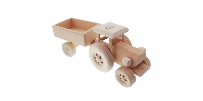 Ce joli tracteur avec remorque en bois de hêtre conçu avec amour, est prêt pour de nouvelles aventures avec votre petit amour. Ce jouet unique peut être conservé comme souvenir lorsque le petit sera grand.