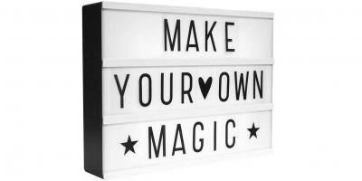 Déplacez les lettres remplaçables. Des lettres et des caractères en plastique transparent à mettre en scène dans les fentes à l'avant de la boîte à lumière. Les variations et les combinaisons possibles sont infinies!